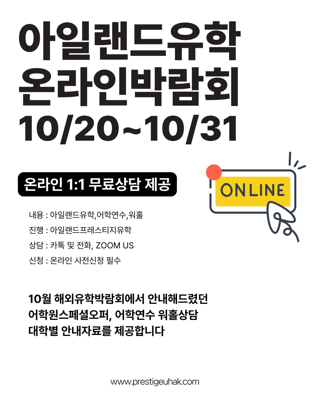 10월 해외유학박람회 (1) 아일랜드국가관 (2) 프레스티지유학 통합부스 (3) 3개의 세미나일정
