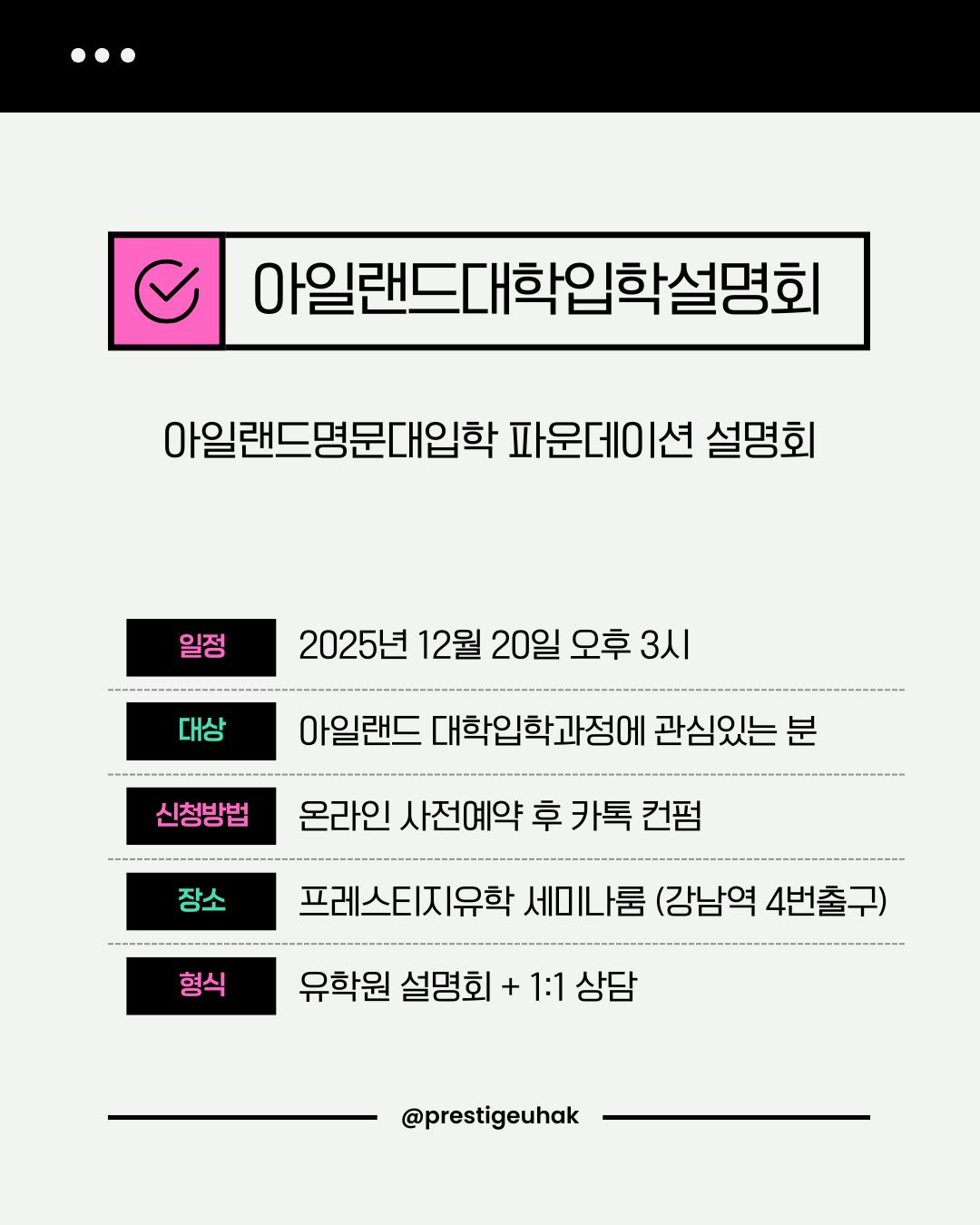 12월 아일랜드프레스티지유학 Open Day 행사에 초대합니다!