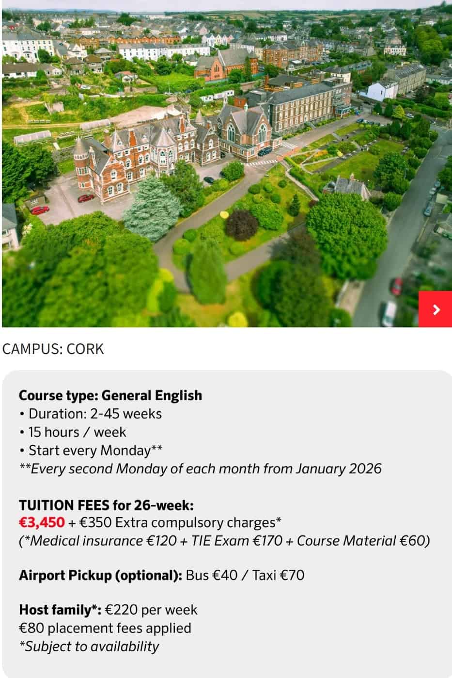 일반 영어 프로그램, QQI 5단계 국제 파운데이션 수료증, 학기 중 영어 수업을 제공