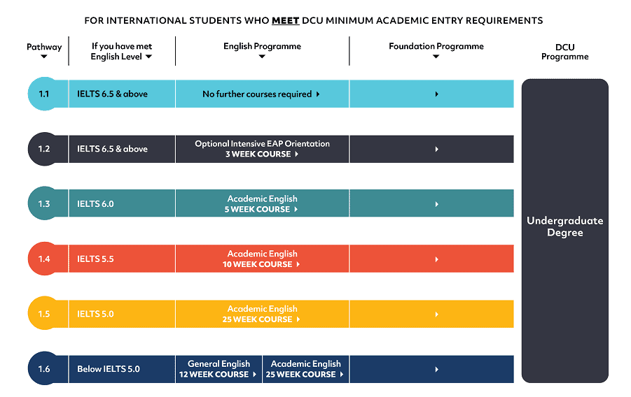 다양한 DCU 대학교 전공으로 진학가능하며 한국 고등학교 졸업자가 파운데이션과정을 통해 입학가능하며, 성적우수자의 경우 파운데이션과정없이 영어성적을 충족한 후 입학가능합니다.