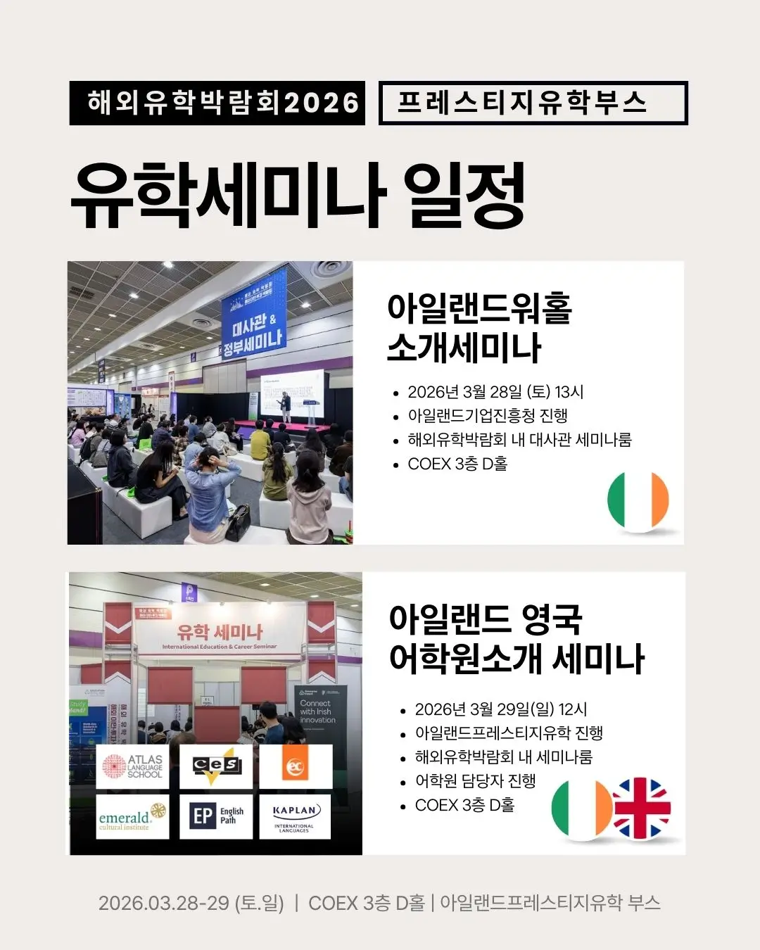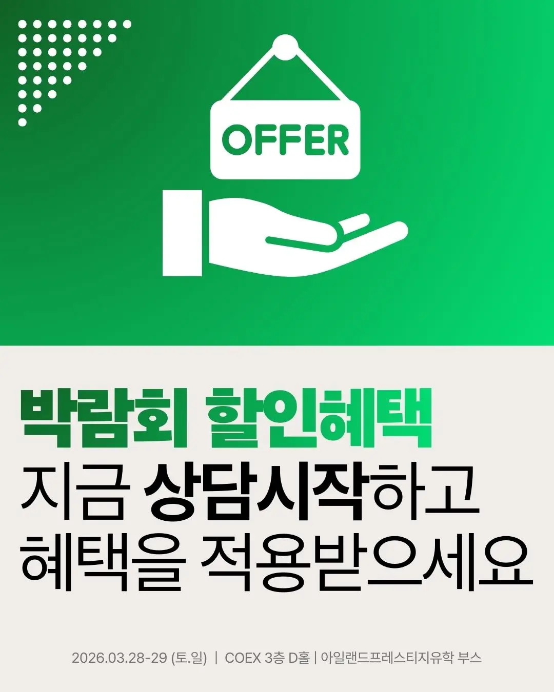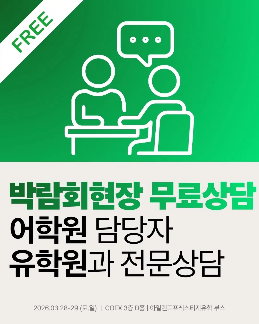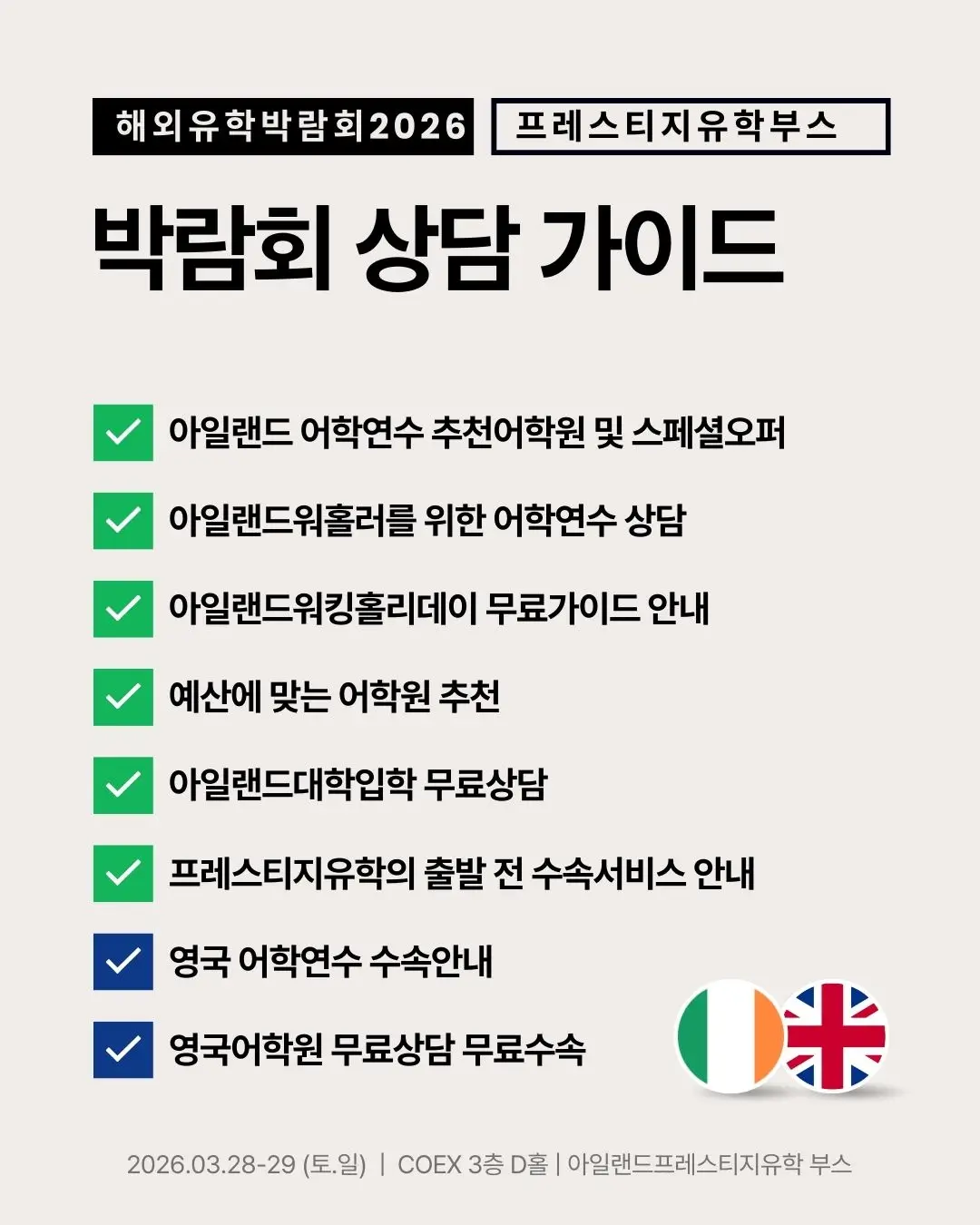 - 부스 : 아일랜드프레스티지유학 통합부스