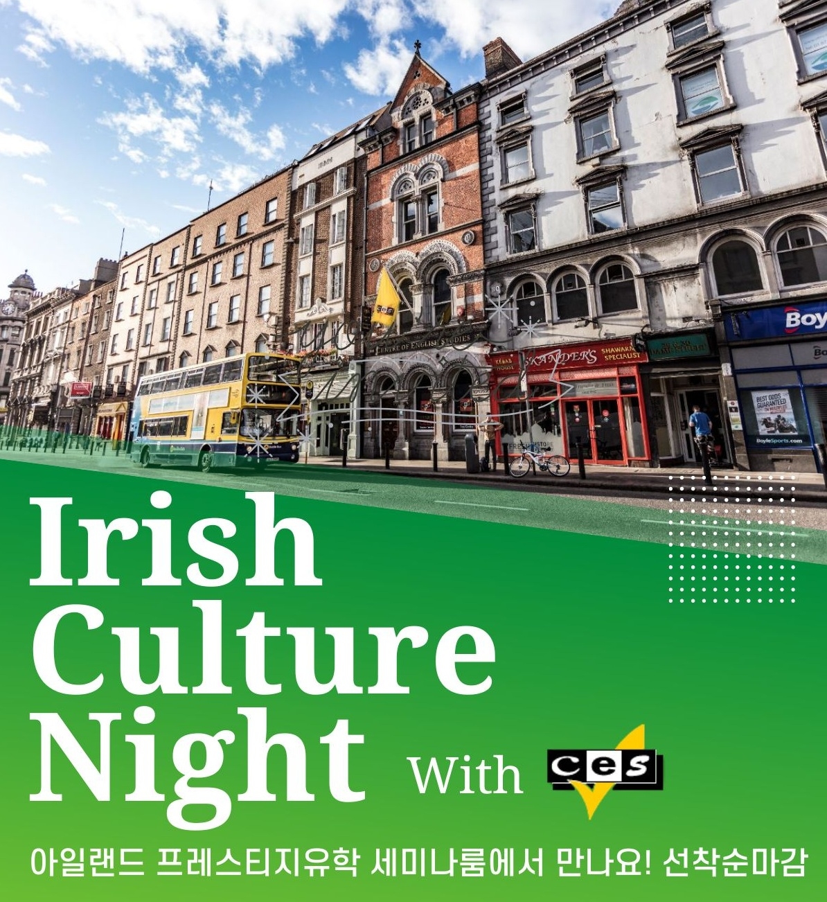 CES 어학원 원장님과 함께 하는 Irish Culture Night에 여러분을 초대합니다 (예약필수,선착순마감)