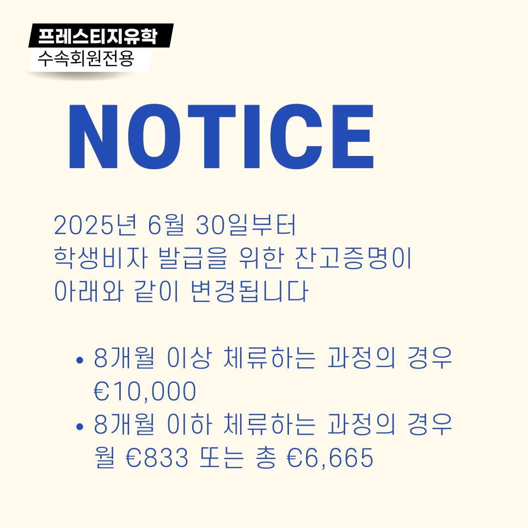 프레스티지유학 수속회원은 공식홈페이지 수속회원 전용게시판을 참고해 주세요.