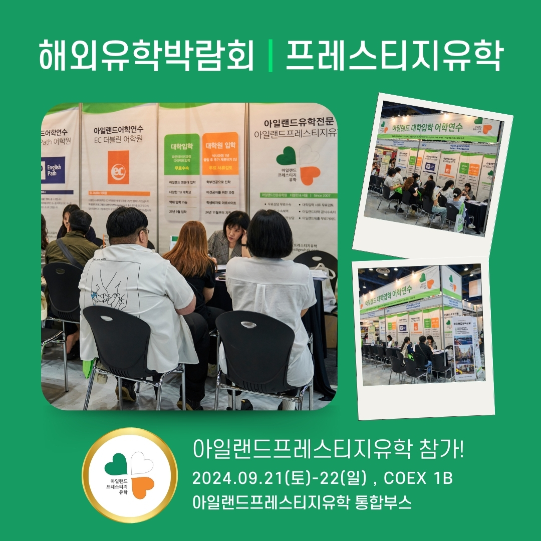 프레스티지유학은 아일랜드대학입학 공식수속처입니다 🌈 무료상담,무료수속,무료서류검토서비스🌷26년 입학상담시작!