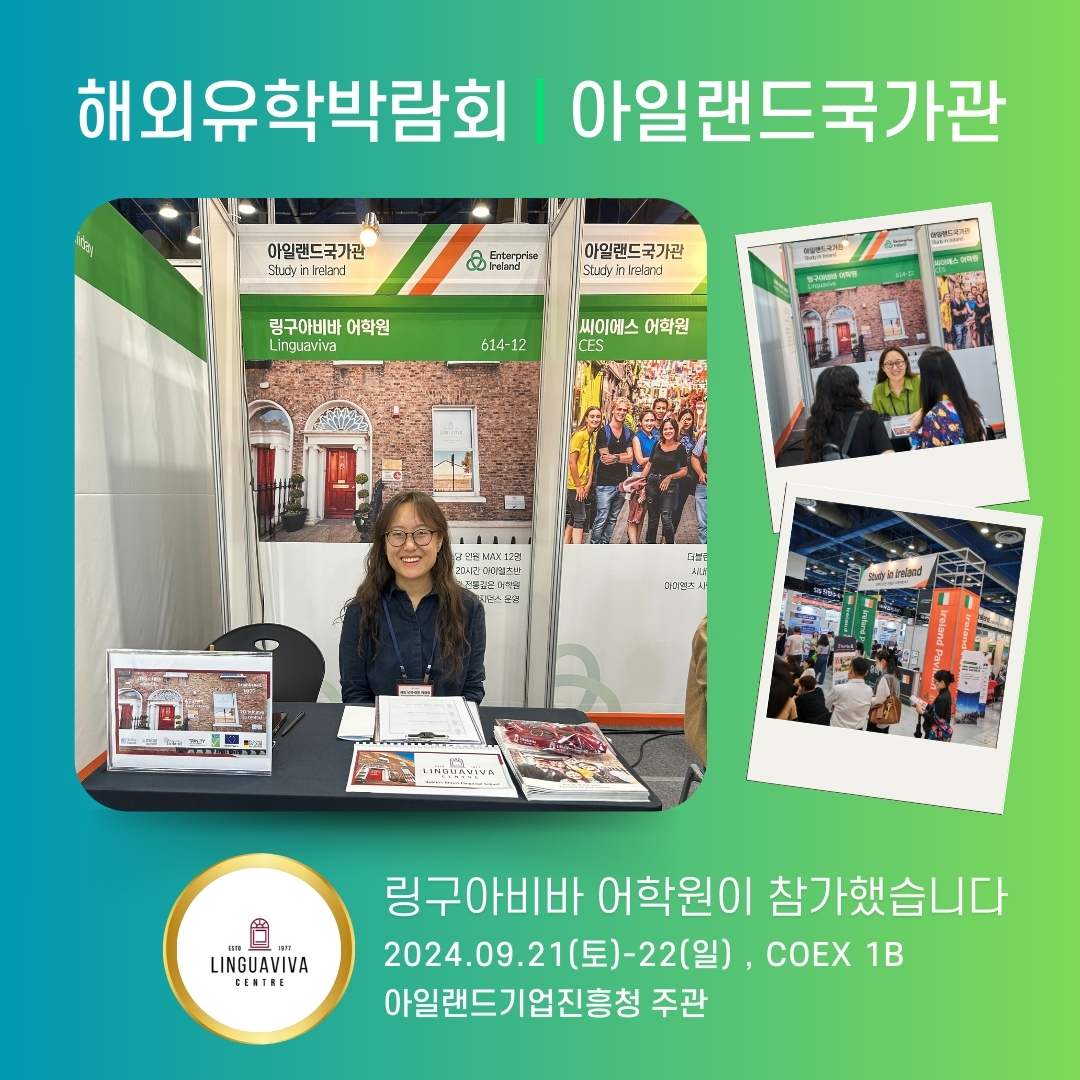 2024년 9월 21일과 22일 양일간에 진행되는 특별한 행사에, 많은 참가자들이 어학원 부스를 방문해주셨습니다. 아일랜드 유학 국가관 행사가 성황리에 잘 마무리되었고요, 어학원에 대한 관심도 높았습니다 ^^*