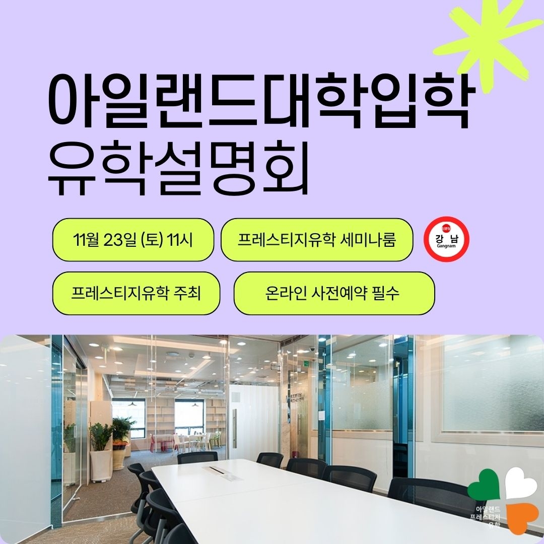 아일랜드프레스티지유학이 주최하는 정기유학설명회에 여러분을 초대합니다.
