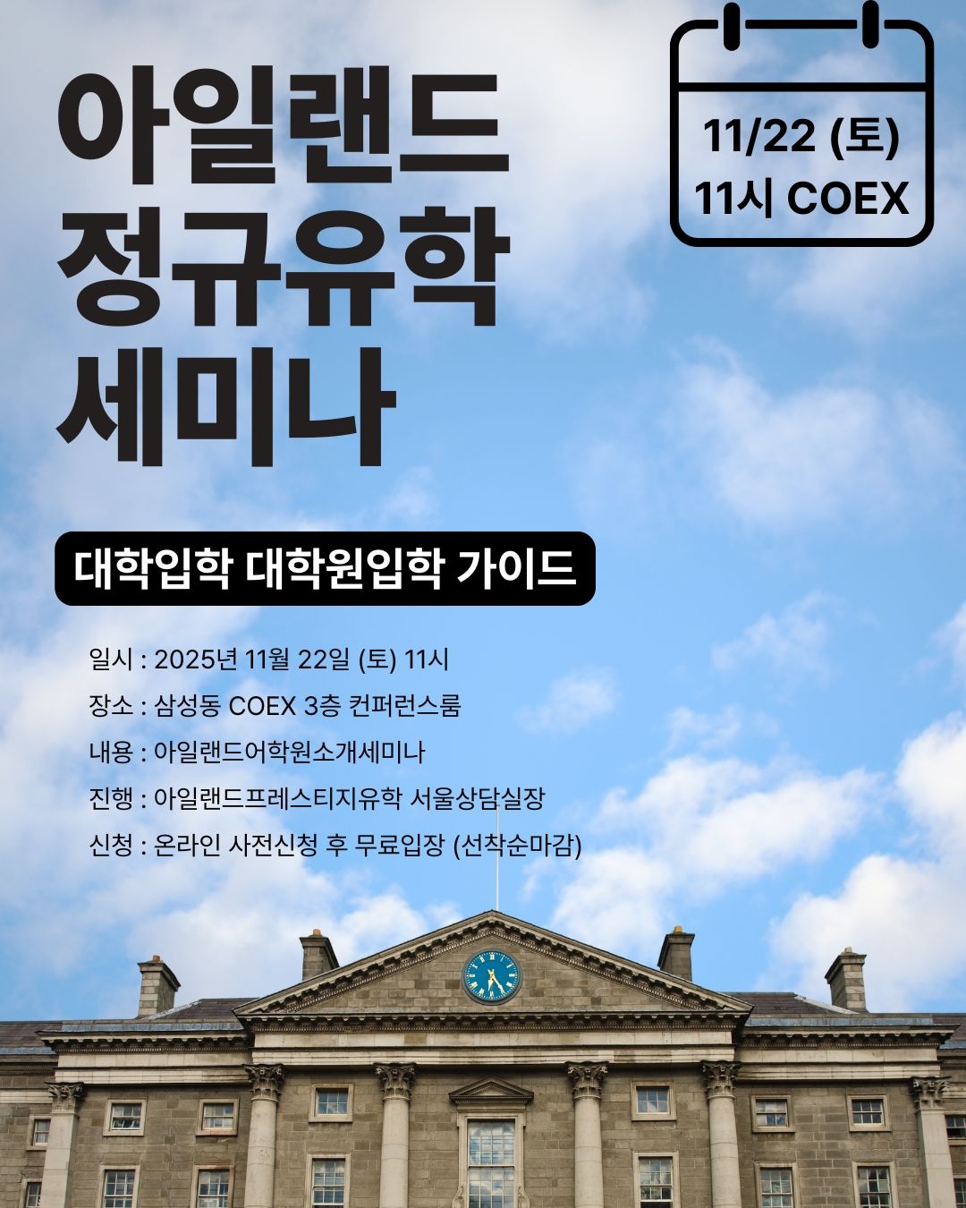 11월 COEX 아일랜드정규유학 세미나 - 대학 & 대학원입학