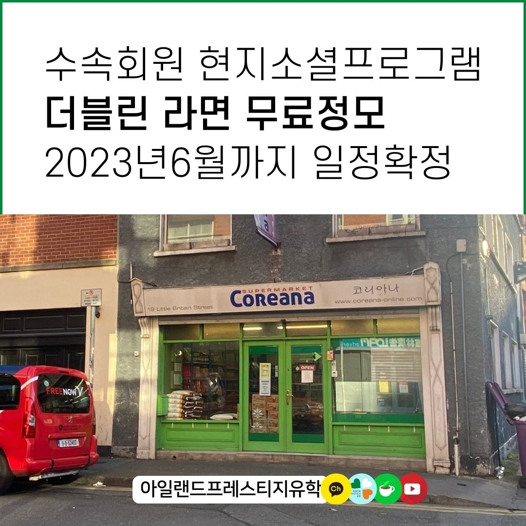 프레스티지유학 수속회원을 위한 현지 소셜프로그램! 매월 더블린 라면 무료정모에 초대합니다