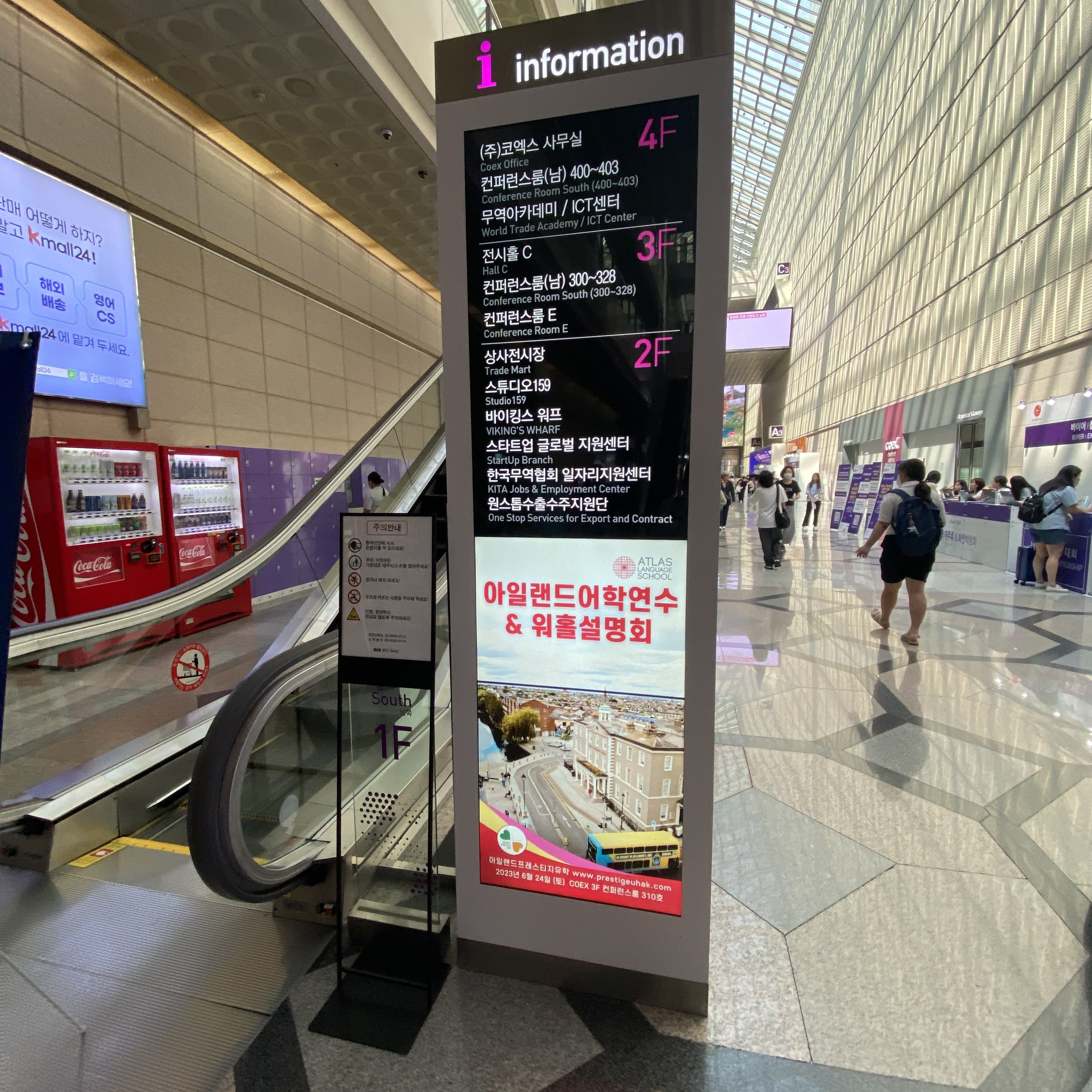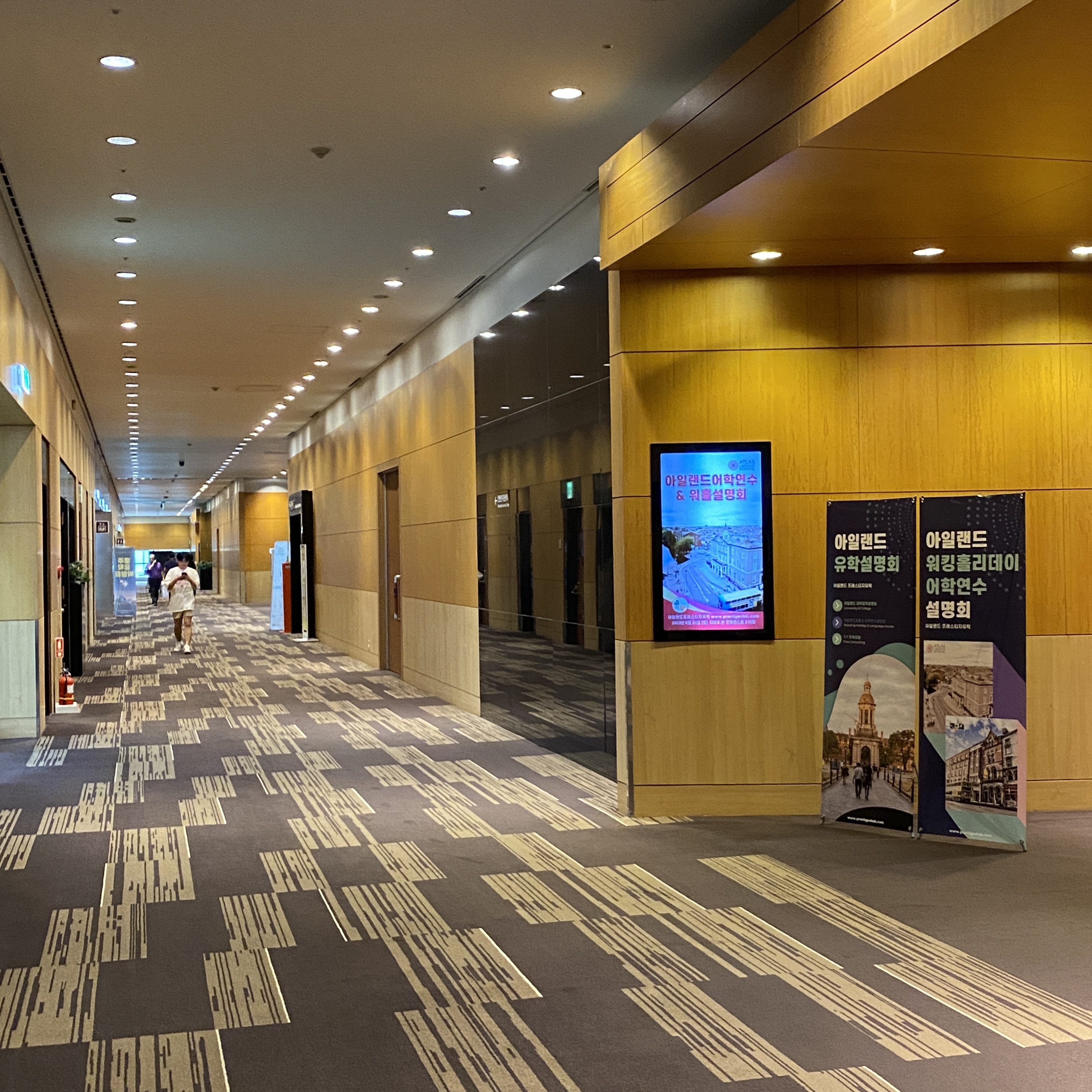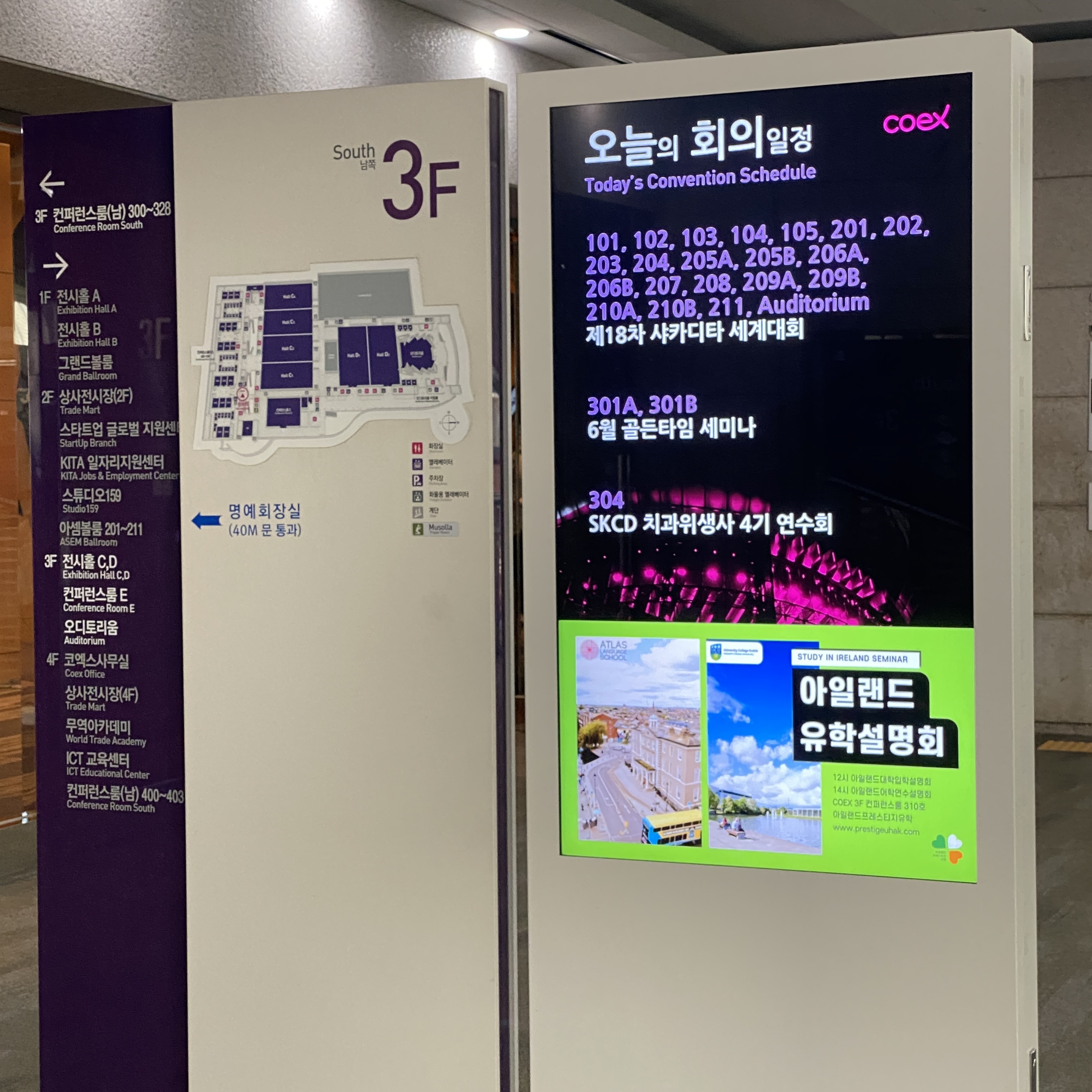 코엑스 1층 에스컬레이터 옆, 그리고 3층 컨퍼런스 입구에 디지털 사이니지에 아일랜드유학설명회 배너가 게재되었습니다.