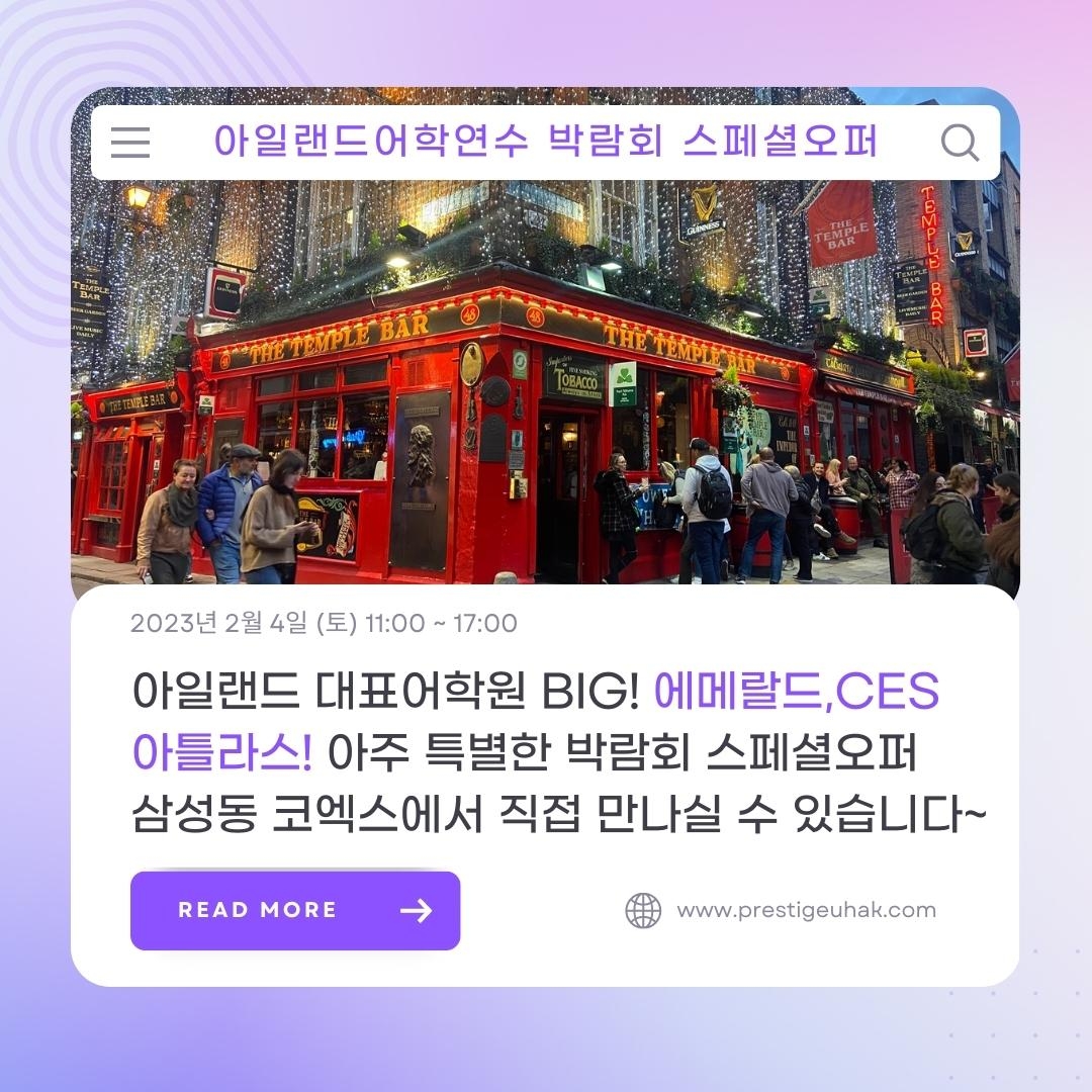 2023년 2월 아일랜드 더블린 BIG3 어학원이 코엑스에 옵니다