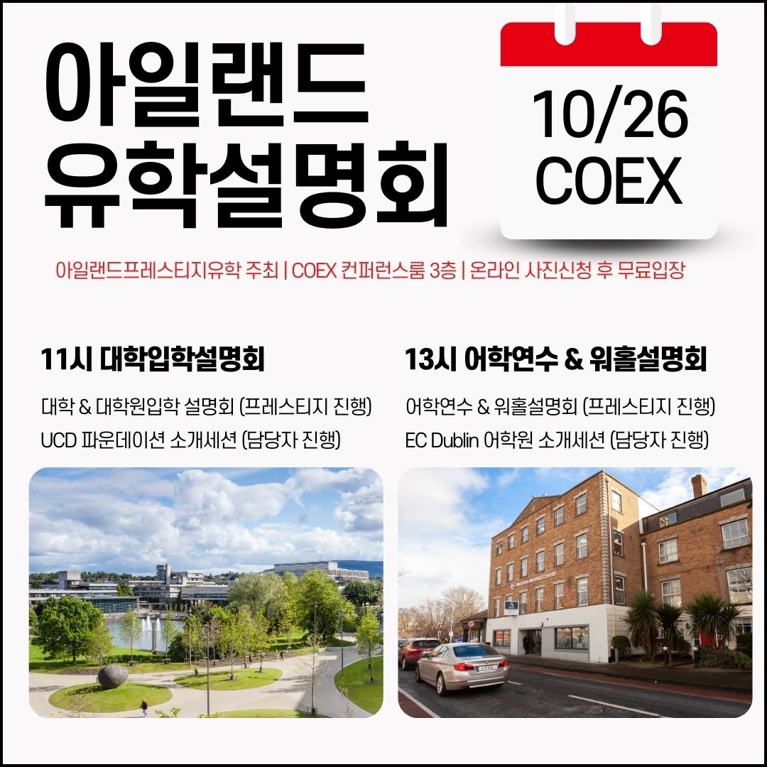 UCD 대학입학 파운데이션과정 설명회 & 특별장학금 적용 ☆ 아일랜드유학설명회 COEX