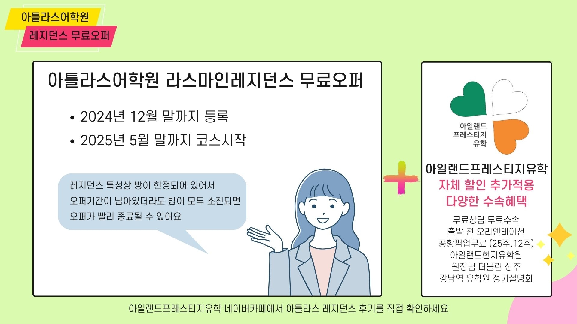아틀라스어학원 학비스페셜오퍼 + 레지던스무료오퍼 + 프레스티지유학 자체 할인